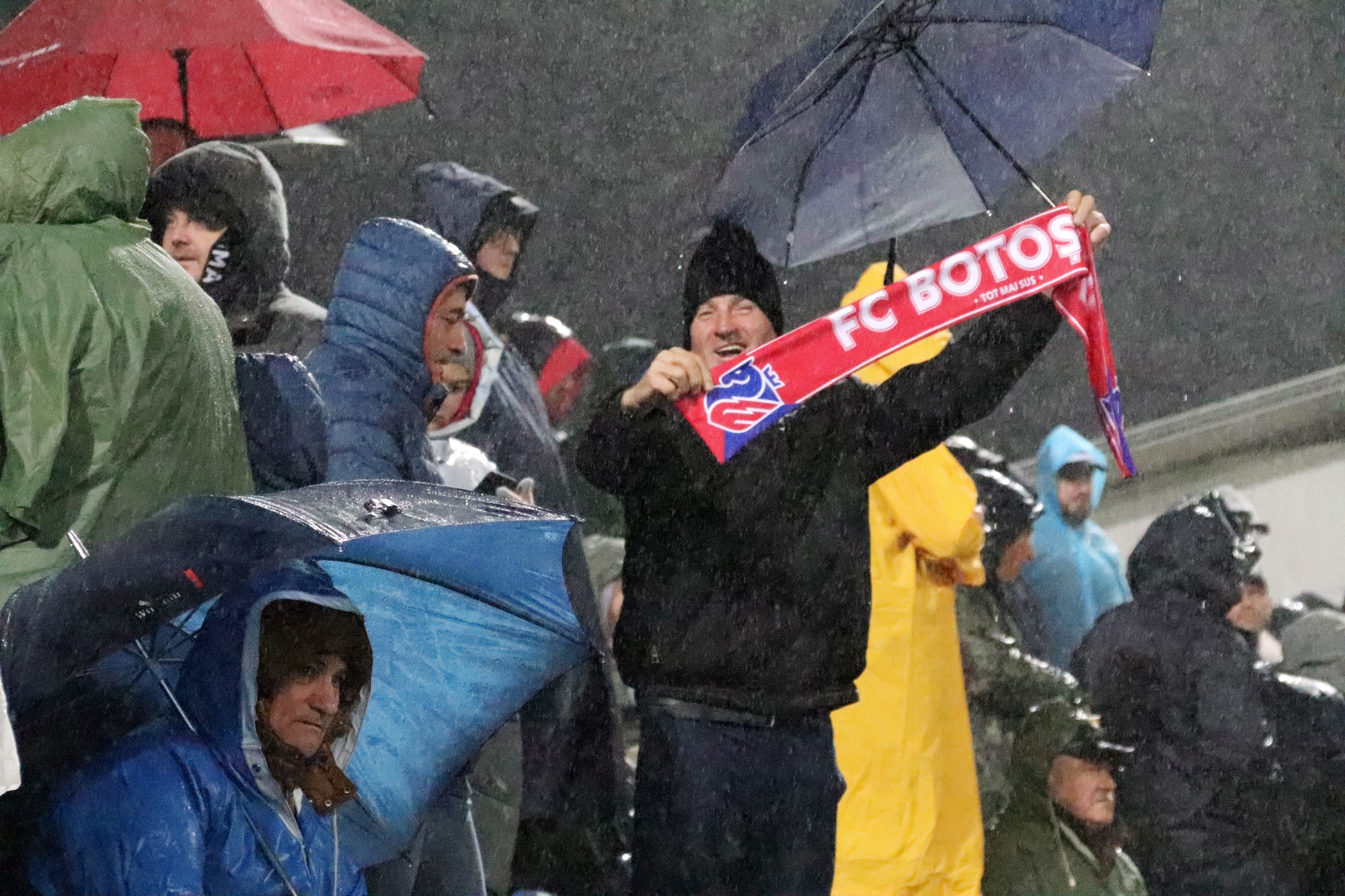 Peste 2600 de suporteri au înfruntat ploaia torențială pentru a susține echipa FC Botoșani în tentativa de a urca pe primul loc al clasamentului Superligii.