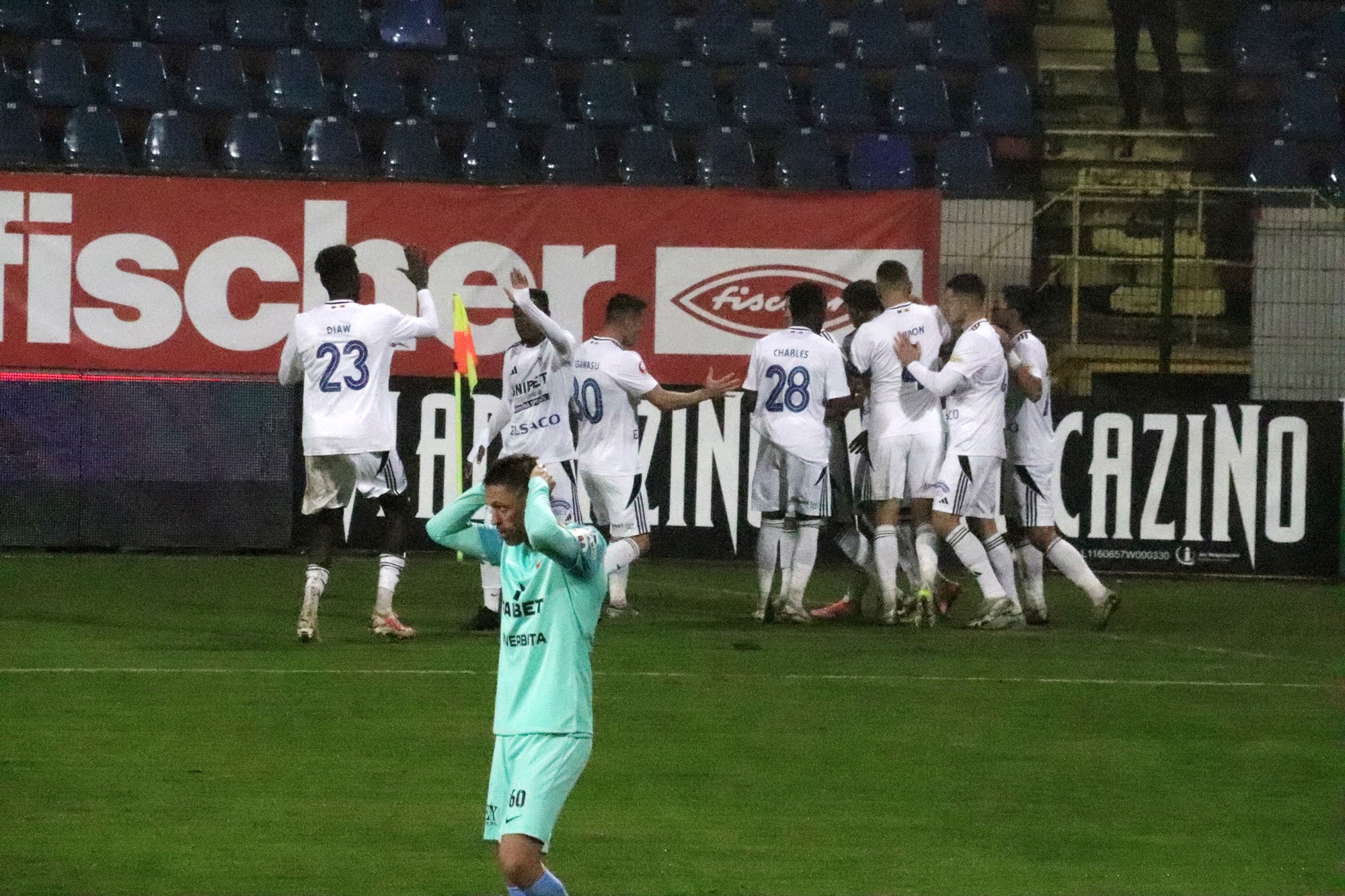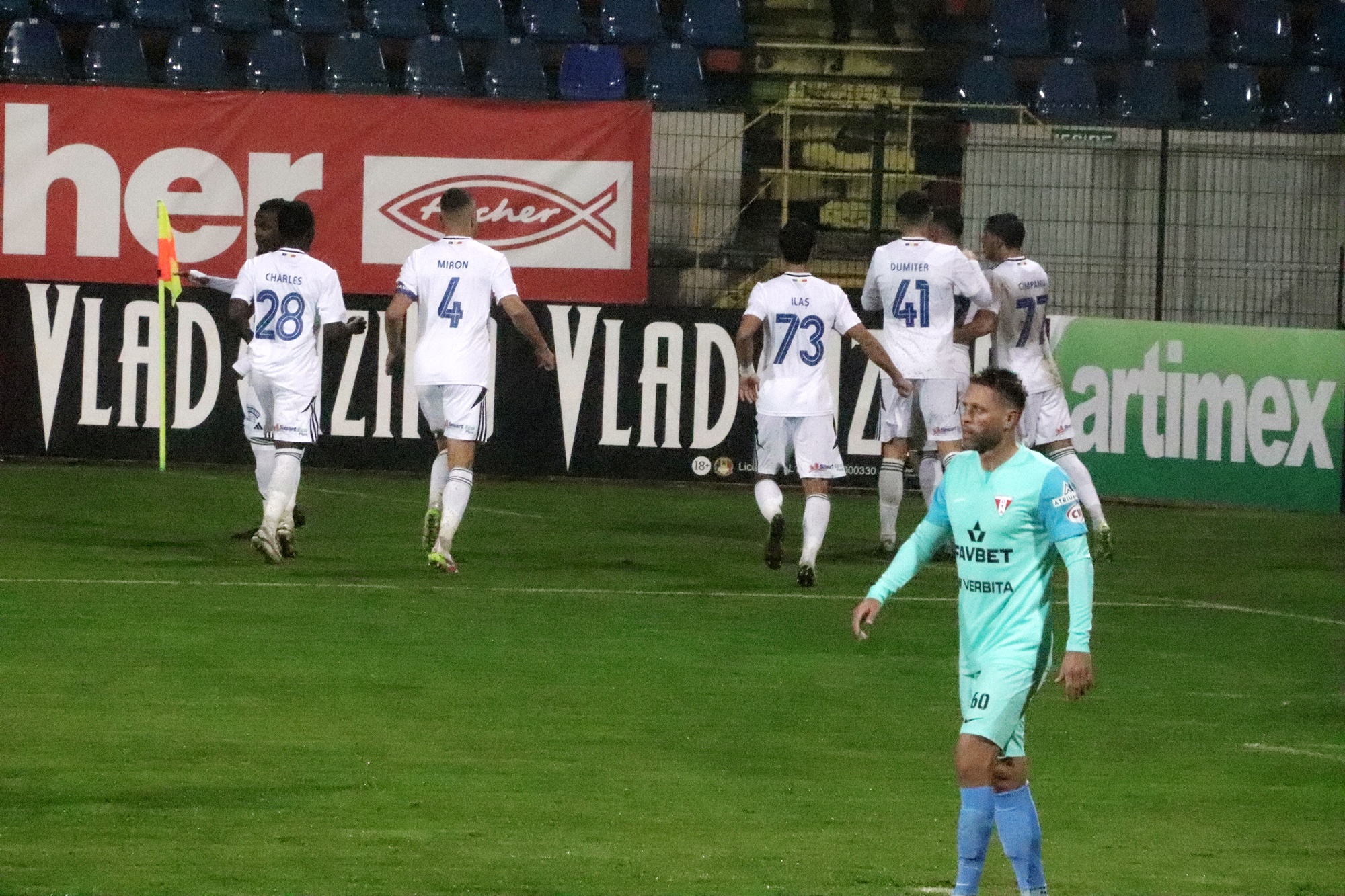 La pauză, Leo Grozavu face două schimbări. Bordeianu și Dumiter ar rămas la vestiare iar pe teren au intrat E. Papa și Kovtaliuk.